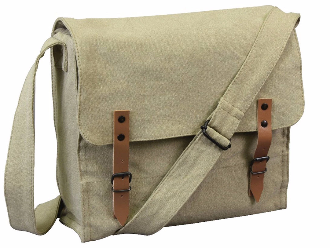 Rothco’s Vintage Canvas Medic Bag is constructed of a durable yet soft washed cotton canvas. This classic military style shoulder bag features a large main compartment with flap and leather strap closures, which is perfect for storing your gear and keeping them secure. The shoulder strap is fully adjustable as well. The 100% cotton canvas bag measures 2 1/2″ x 11″ x 3 1/2″.