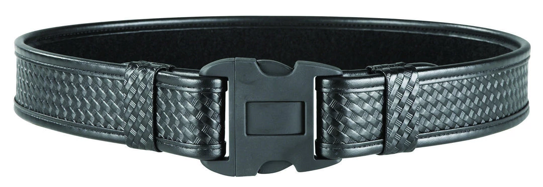 The Model 7980 Duty Belt features 4-part laminate construction for firmness and holster support. It features a Duraskin™ exterior with loop lining for use with the Bianchi® 7205 Liner Belt. 2.25 in. (58 mm) belt width. It features the Tri-Release™ shatter-resistant polymer buckle. Its 3-point release provides extra security from inadvertent release. Complements AccuMold® Elite™ accessories.