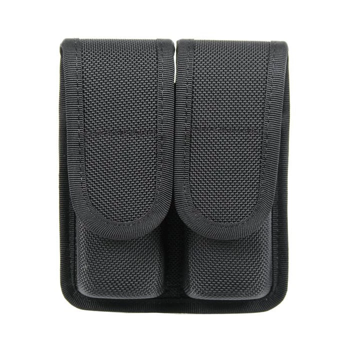This Double Mag Pouch is crafted of molded CORDURA to bring the best of both worlds, with traditional looking, street-tough duty gear. It fits most single stack 9mm/.40 cal/.45 cal magazines.