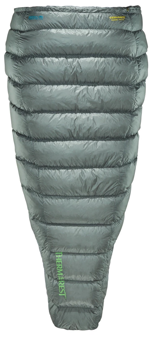 For the lightest possible pack, we crafted the Vesper 45F/7C to deliver the essential warmth needed for mild-weathered pursuits. To keep it light, we used powerful 900 fill Nikwax Hydrophobic Down certified by the Responsible Down Standard. Designed with high-quality materials and Therm-a-Rest performance features like SynergyLink™ connectors, a snap neck closure, perimeter side baffles and an insulated footbox provide warmth and comfort in the backcountry. When compared to sleeping bags, the Vesper quilts save weight and pack smaller by utilizing the warmth of your insulated pad. Storage sack and compression stuff sack included.