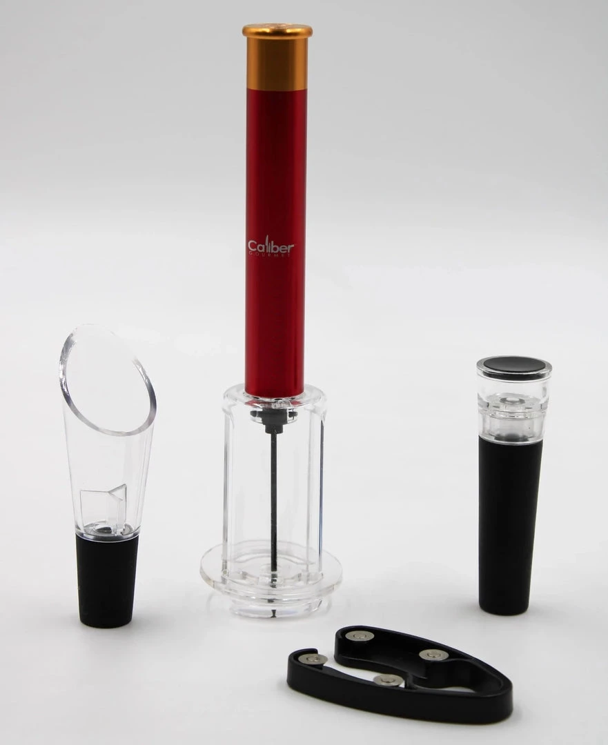 A unique air pump wine bottle opener.  Aluminum alloy body, strength ABS cover, teflon needle surface treated with food grade, strong, resistant to corrosion; Cordless and lightweight design wine opener, easy to take along; No power needed, so open anywhere while camping or traveling.