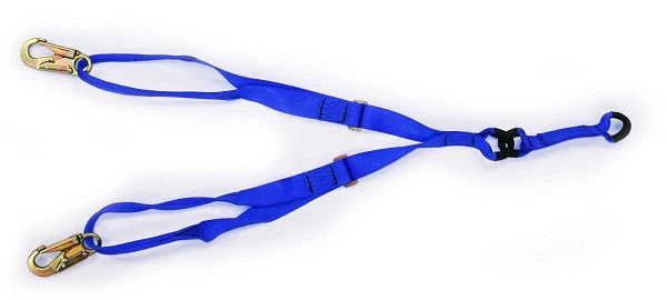 Y legged lanyard with snap hook 6ft – adjustable with tie back feature. Webbing rated more than 5000lbs. Designed specifically for safety and positioning for high rope courses.