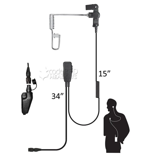 – Clear tube earpiece can be worn on either ear.