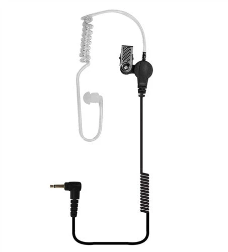 An affordable earpiece for the budget oriented. This acoustic clear tube listen only earpiece with 14″ coiled cord and 2.5 mm connector is for any radio or remote microphone with a 2.5mm earphone jack. The clear tube is replaceable and compatible with our molded earpieces. Typically connects to Kenwood, Harris MaCom, and Otto Brand speaker microphones.