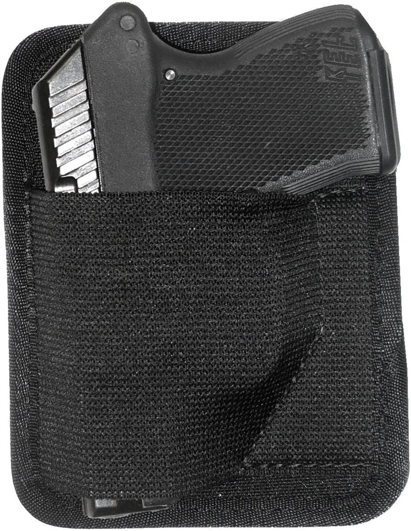 Versatile, affordable, and durable. Constructed of 10 lb. foam and nylon with an elastic retention band. Removes the profile of the weapon in your pocket.