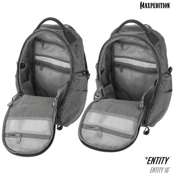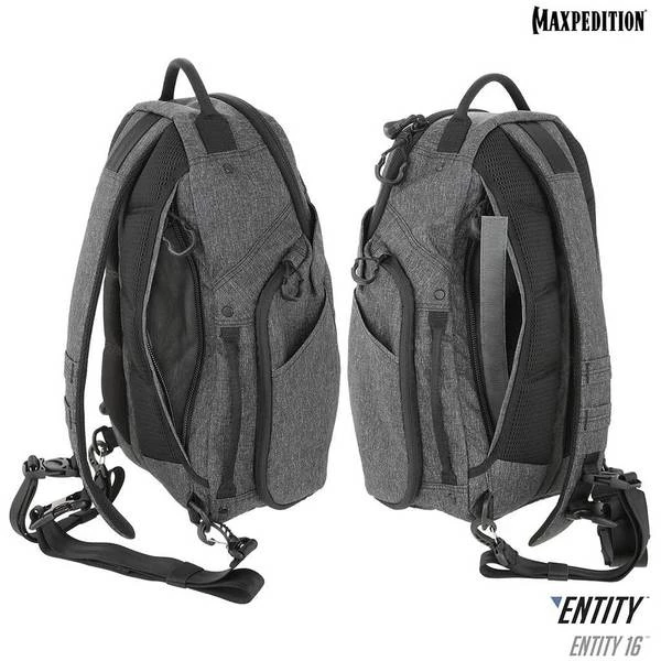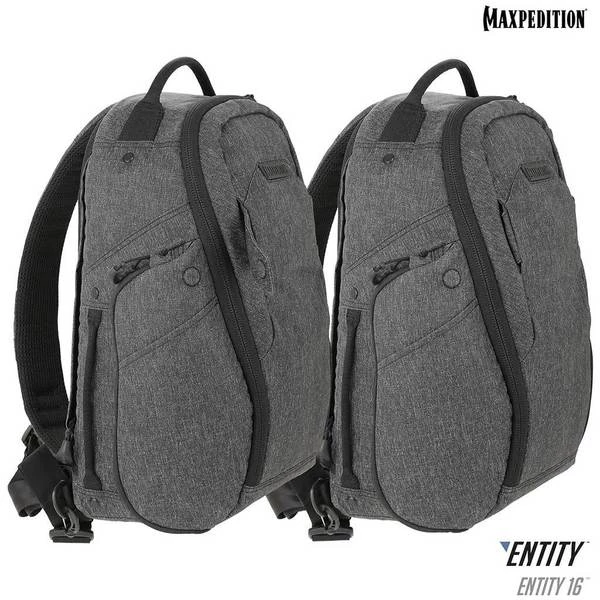 The Entity 16 is a fully ambidextrous sling pack with padded shoulder straps and quick release buckles. The lockable main compartment has drawbridge straps for additional security, and there is a dedicated sleeve sized to fit most tablets. The front exterior has tuckable magnetic wings for quick temporary closing of the main compartment. The dual access rear CCW compartment is fully loop-lined, and a double-sided hook Security Lockout Strip is included. Dual side ports are perfect for headphones, charger cables, etc.