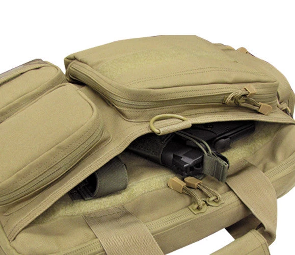 The Condor Briefcase is a multi-function briefcase suited for carrying important documents, electronics, and other equipment as well as having a conceal carry compartment. Perfect for the urban environment and the day to day commute.