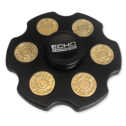 Check out our take on the insanely popular fidget spinner. Shaped like the profile of a revolver and featuring Winchester 45 Auto insets, this is the spinner for all us gun guys. We used high quality bearings for a smooth spinning action, and solid metal construction adds a nice amount of weight to this revolver spinner. You are going to want to give this revolver a spin!