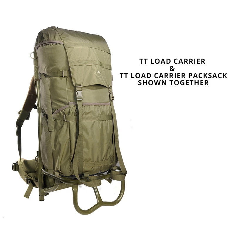 The TT Load Carrier Packsack is designed to attach to the TT Load Carrier. It attaches to the frame, converting it to a full-size external frame pack.
