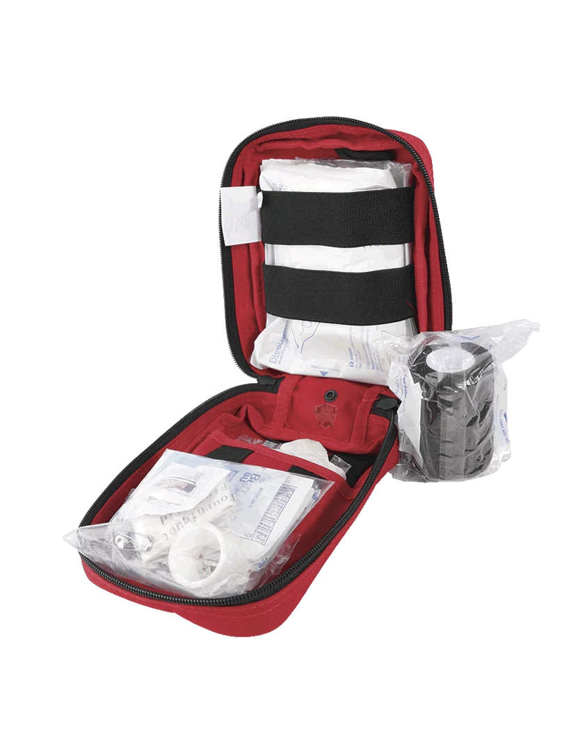 These First Aid Trauma Kits were designed by a former para-rescue individual to be used by those who may find themselves in the line of fire; police, military, tactical groups and hunters. The pouch has easy access to all essential items in an emergency. Also comes with two large straps with snaps at one end to attach to a belt up to 5″ wide.