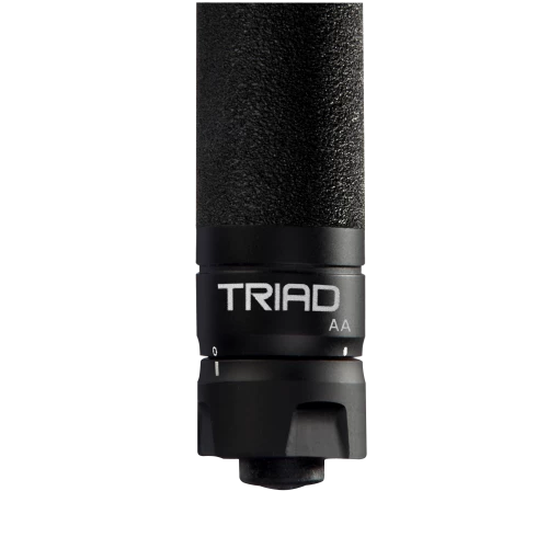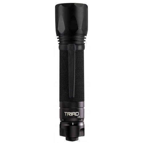 Triad lights are machined from 6061 T6 aerospace aluminum. They are Type lll hardcoat anodized in a proprietary matte black finish. Each light has a foamed vinyl grip like the finest Tactical Baton.