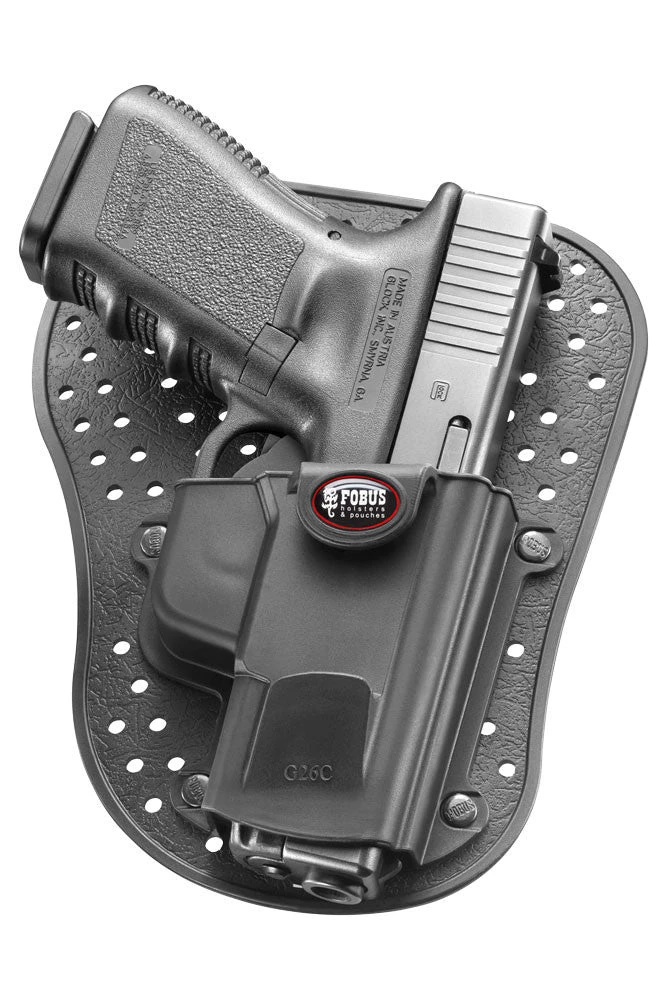 The Concealed Inside the Waistband (IWB) Holster from Fobus is a low-profile design intended for comfort and discretion. It attaches to belts employing a J-hook, which ensures it remains securely in place and allows for rapid removal without having to undo a belt. Made from high-density polymer, the holster maintains its shape while empty, which also guarantees smooth one-handed reholstering. The flexible, rubberized backing pad offers improved ventilation and is soft and comfortable to wear. Additionally, the durable material safeguards firearms from damage by bodily fluids and daily wear.