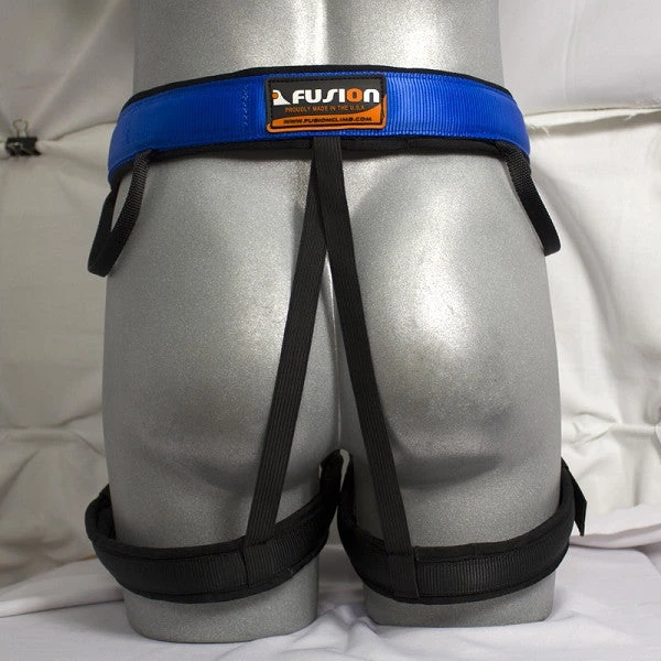 Chronus climbing harness with lightly padded waist and legs for comfort and support. Sturdy double back buckles & includes gear loops, one on each side.