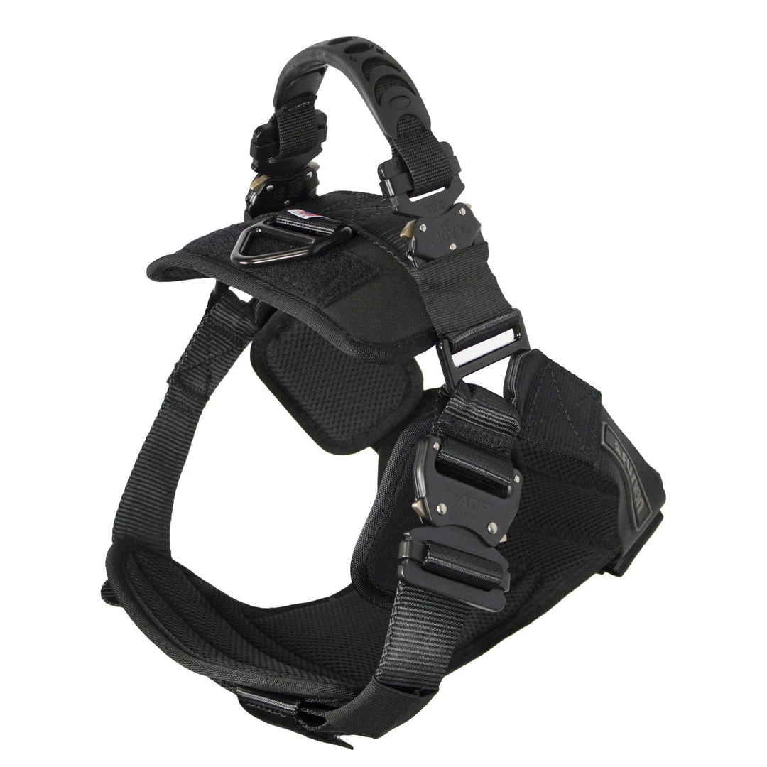 The K9 Trekker allows the handler for a simple and ease of control to quick access of K9 in motion. The 1,200 lb rated detachable cushioned handle and 3,000 lb rated USA made RaptorTM buckle, makes this one of the toughest indestructible K9 harness on the market.