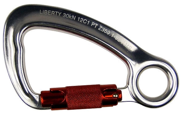 With its extra-large body and true captive eye, this carabiner is a great choice for a wide variety of applications. It has an aluminum body and an auto-locking gate with a snag-free key-shaped nose. Meets ANSI Z359.1-92 standards.