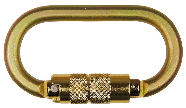 Oval-shaped carabiner decreases the chances of cross loading the gate and distributes the load evenly making it ideal for use with pulleys. It is easy to handle and clip to any pulley for climbing applications. Strong and versatile with an alloy steel body & auto-locking gate. Meets ANSI Z 359.1-92 standards.