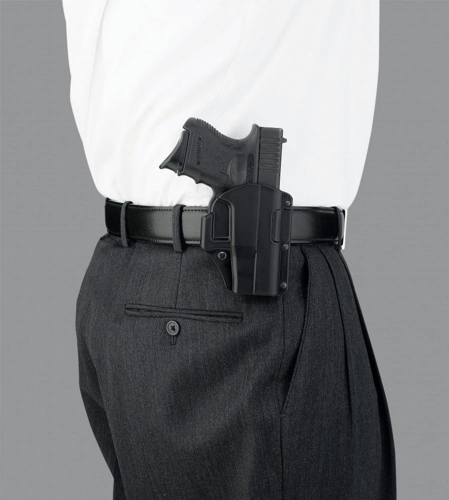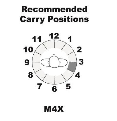 Using the same paddle as the highly popular M5X holster, the M4X offers all the quick-on quick-off advantages of a paddle design, while remaining securely anchored on the belt when in use. The slight forward cant allows a fast and comfortable draw, while pulling the handgun in tight for good concealment.
