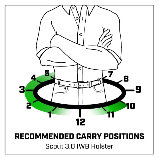 The Scout 3.0’s versatility comes from its adjustability for cant and angle. You like to carry in the currently-hot appendix position? Adjust the belt clip to a neutral (vertical) cant. Prefer a more traditional strongside behind-the-hip position? Just angle the clip to accommodate. Like a crossdraw carry? Move the clip the other direction!