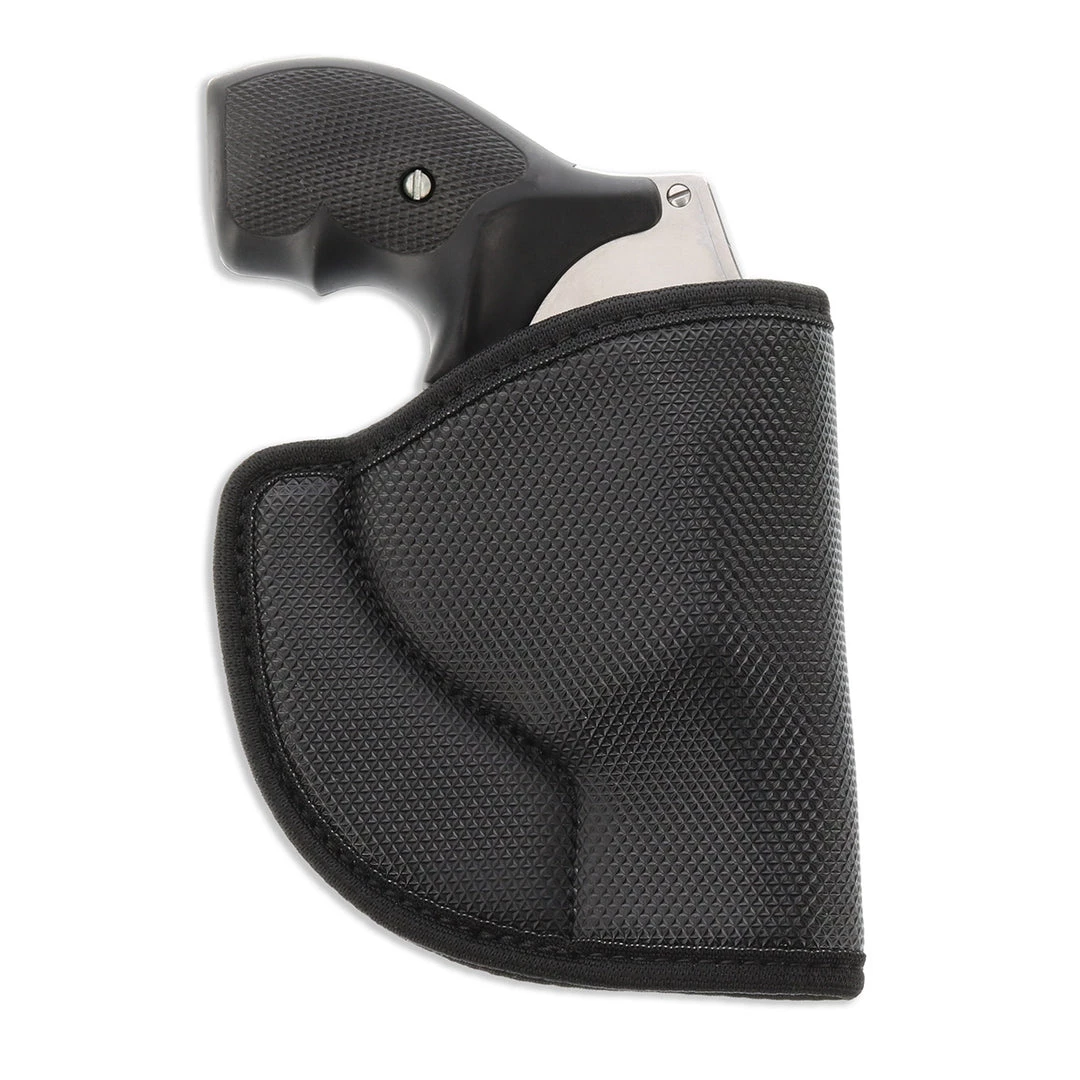 The StukOn-U is designed for front pocket carry in pants or a jacket. Galco’s pocket holsters greatly minimize the handgun from shifting in your pocket, allowing for a sure and quicker grip acquisition when drawing. The holster covers the trigger to prevent entanglement with foreign objects and adds a safety barrier between fingers and trigger when acquiring a grip. It conceals the shape of the handgun so its outline doesnt print through the pocket, and allows one-handed release of the handgun from both pocket and holster.