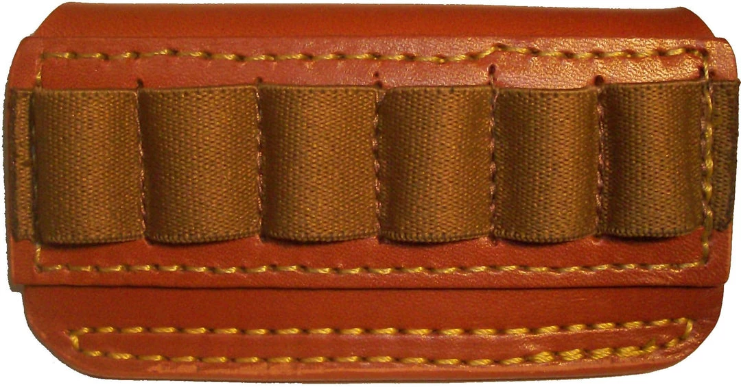 Genuine top grain leather. Elasticized cartridge loops adjust to cartridge size. Fits belts up to 1-3/4 in.