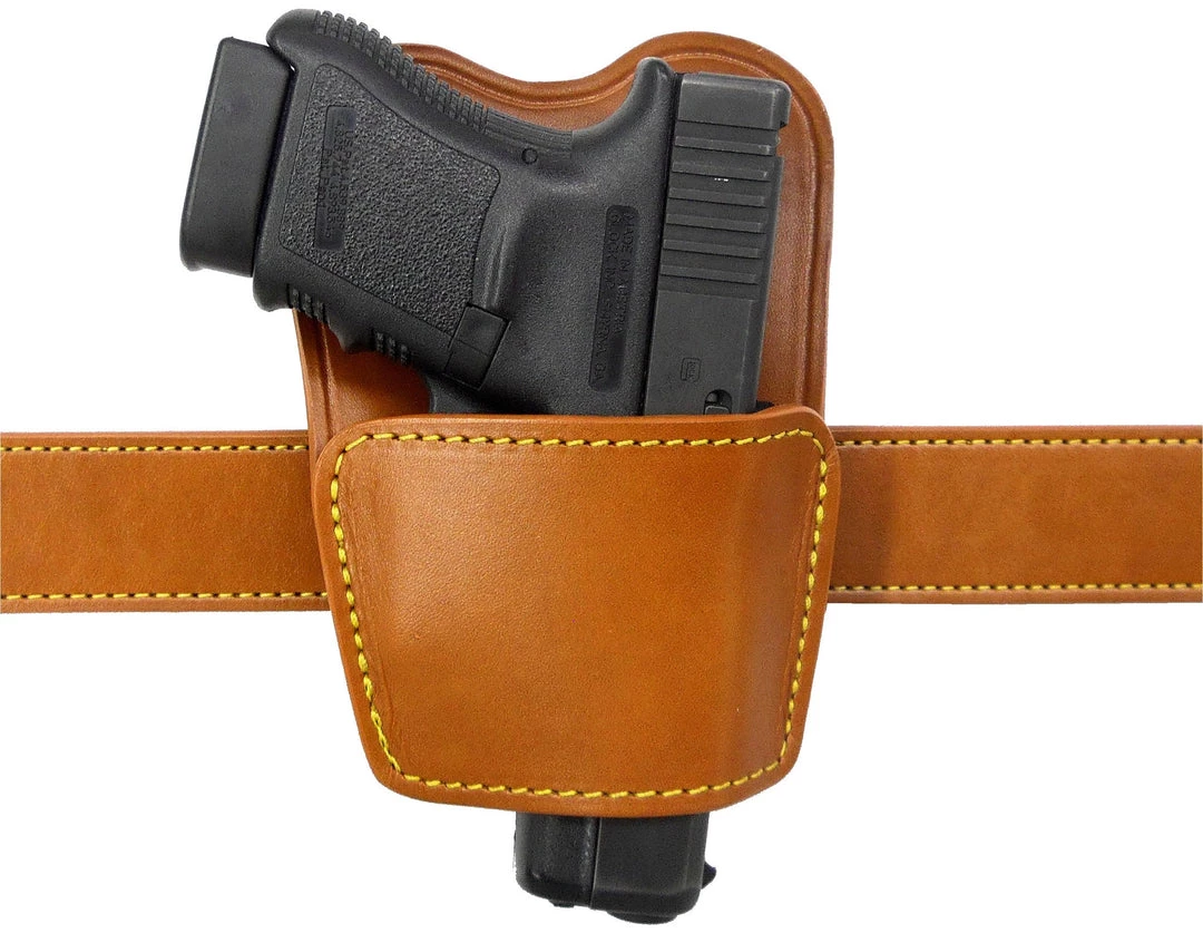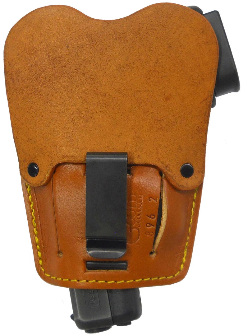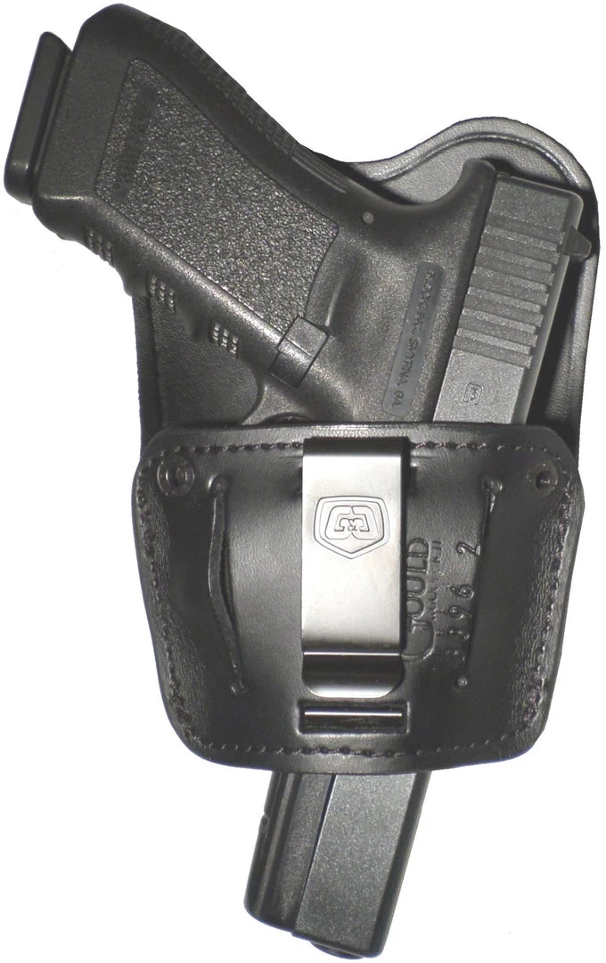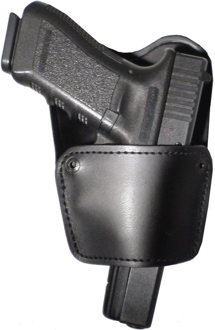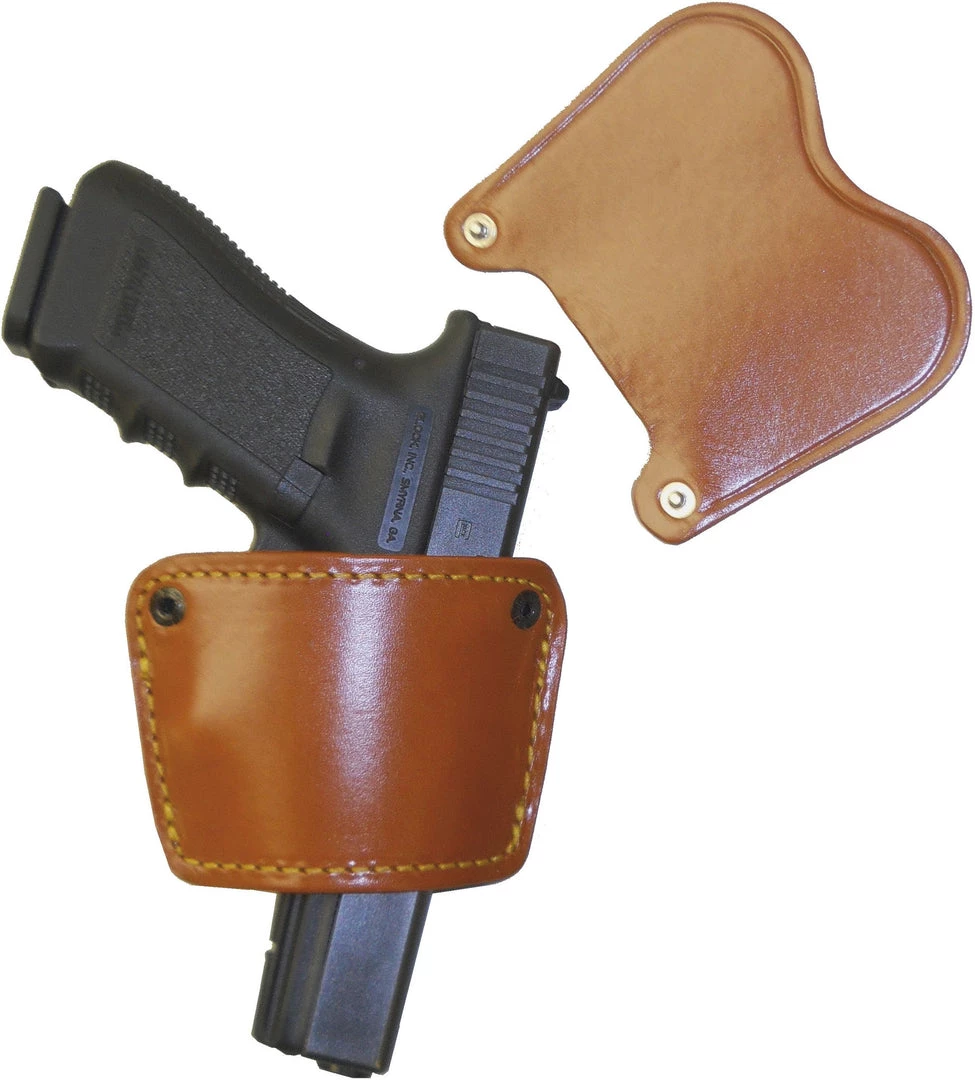 Spring steel clip and leather flap body shield are removable for maximum versatility.