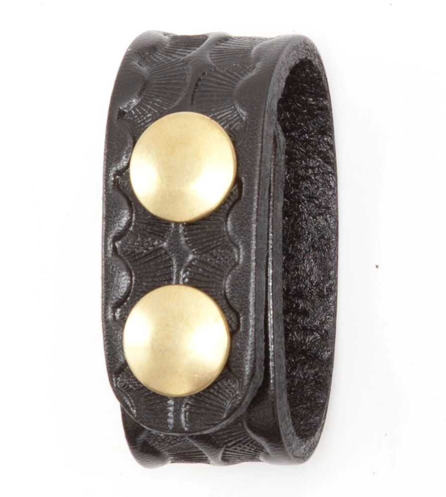 3/4 in. wide. Holds your duty belt to your trouser belt. Fits belts up to 2-1/4 in.