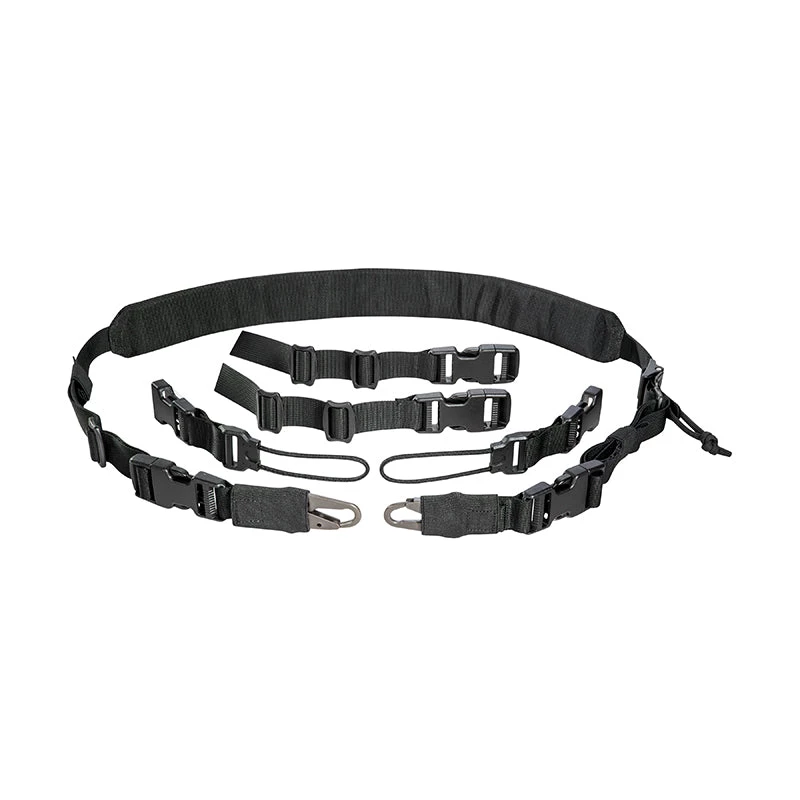 Padded strap with a variety of carrying and attachment options. Quick fasteners allow you to attach weapons, hooks, etc.