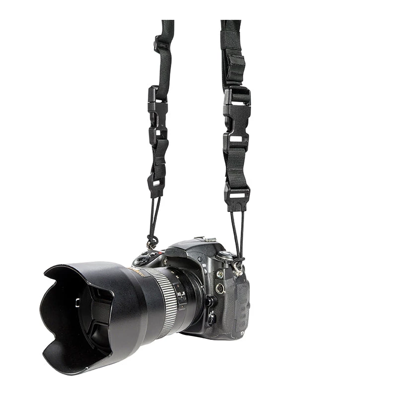 - 2 elastic loop attachments work with cameras, binoculars, etc.