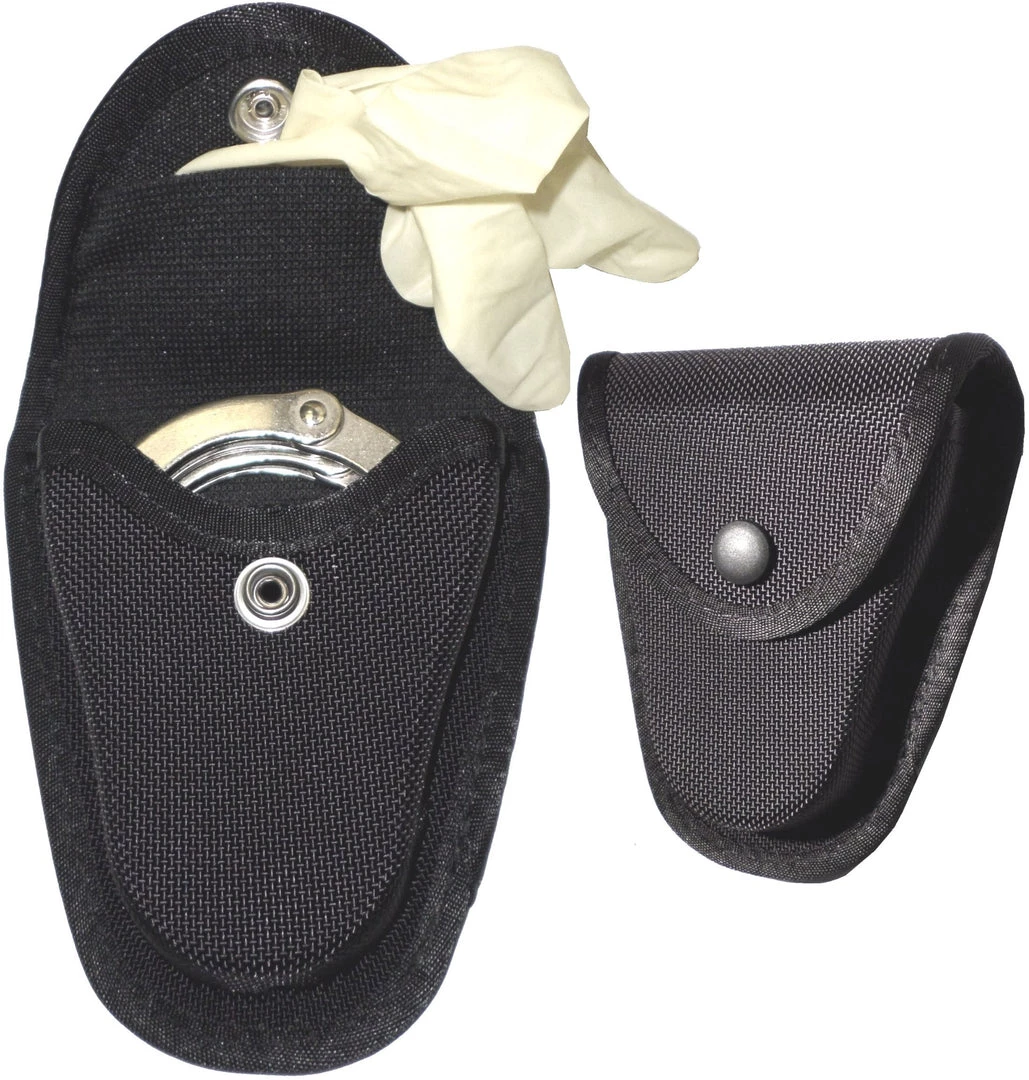 Holds most chain handcuffs. Inner pouch holds one pair of surgical gloves.
