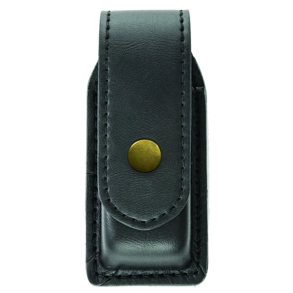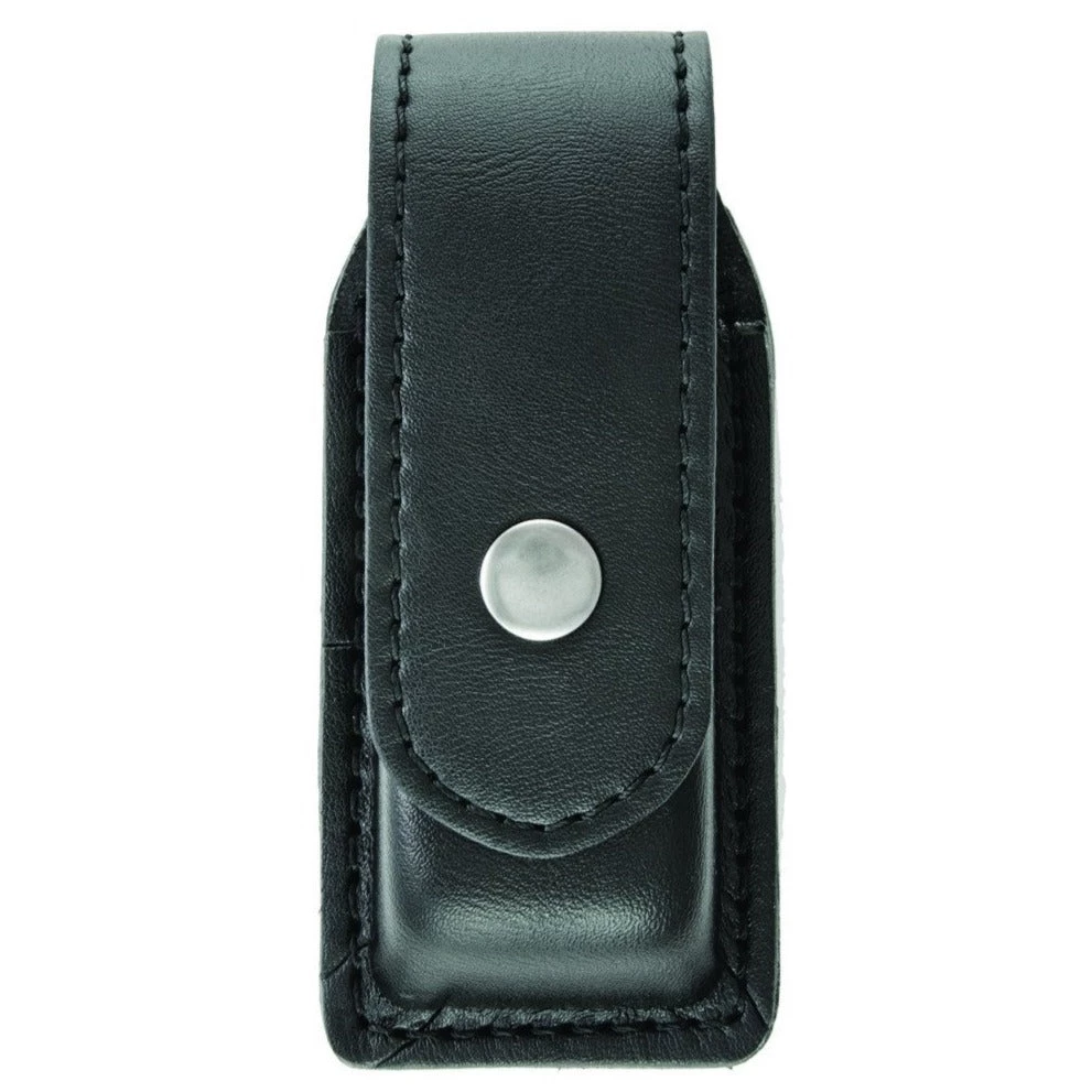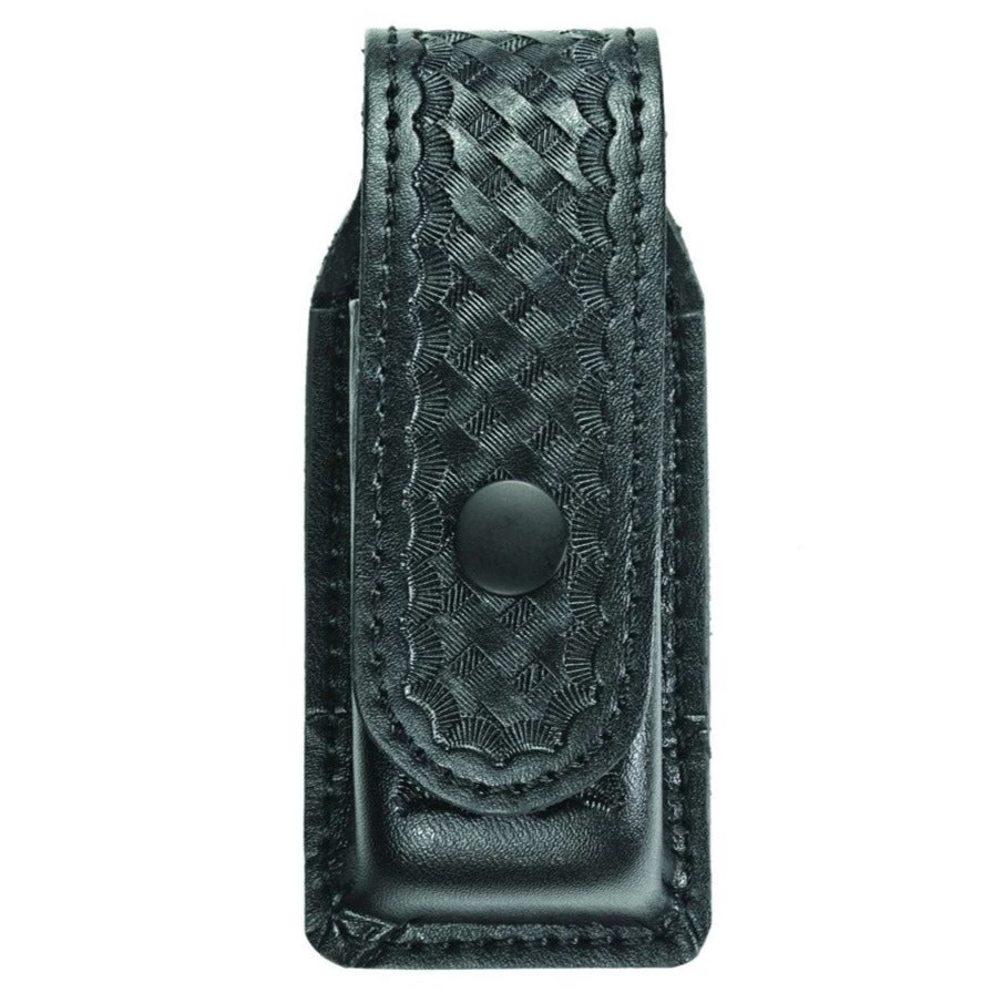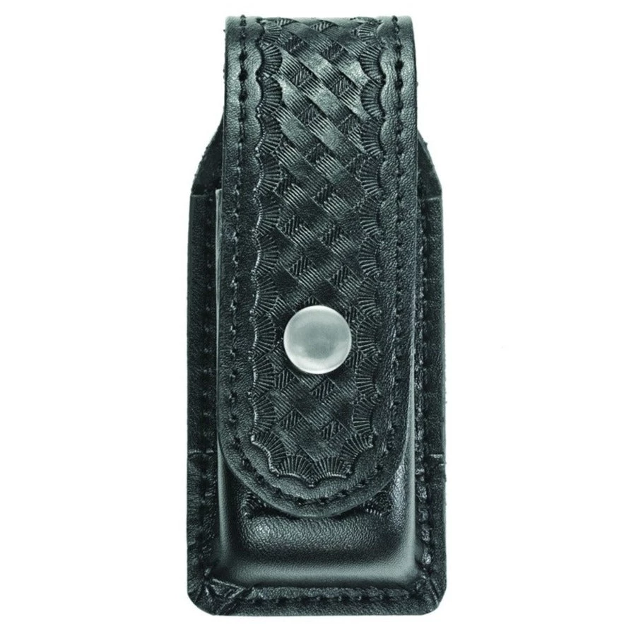 AirTek Single Closed Large Magazine Case is crafted with our specialized 33E HP finish and 100% genuine leather to provide lightweight comfort, scratch resistance and durability. Molded design for secure equipment placement and quick in/out access. Reinforced DOT® snaps for reliable snap/re-snap functionality. Fits most double stacked magazines.