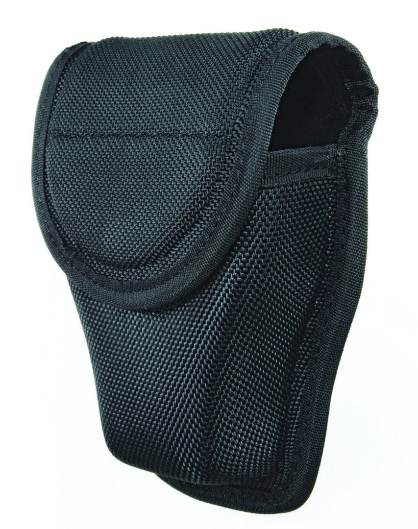 The Ballistic Closed Double Handcuff Case is constructed with 1680 denier ballistic material for lightweight comfort and durability and fits one pair standard chain handcuffs and one pair ASP/coated chain handcuffs. Molded design with separate handcuff compartments for secure equipment placement and quick, easy in/out access. Hidden snap closure offers a professional look and reinforced USA DOT® snaps provide reliable, secure snap/re-snap functionality.