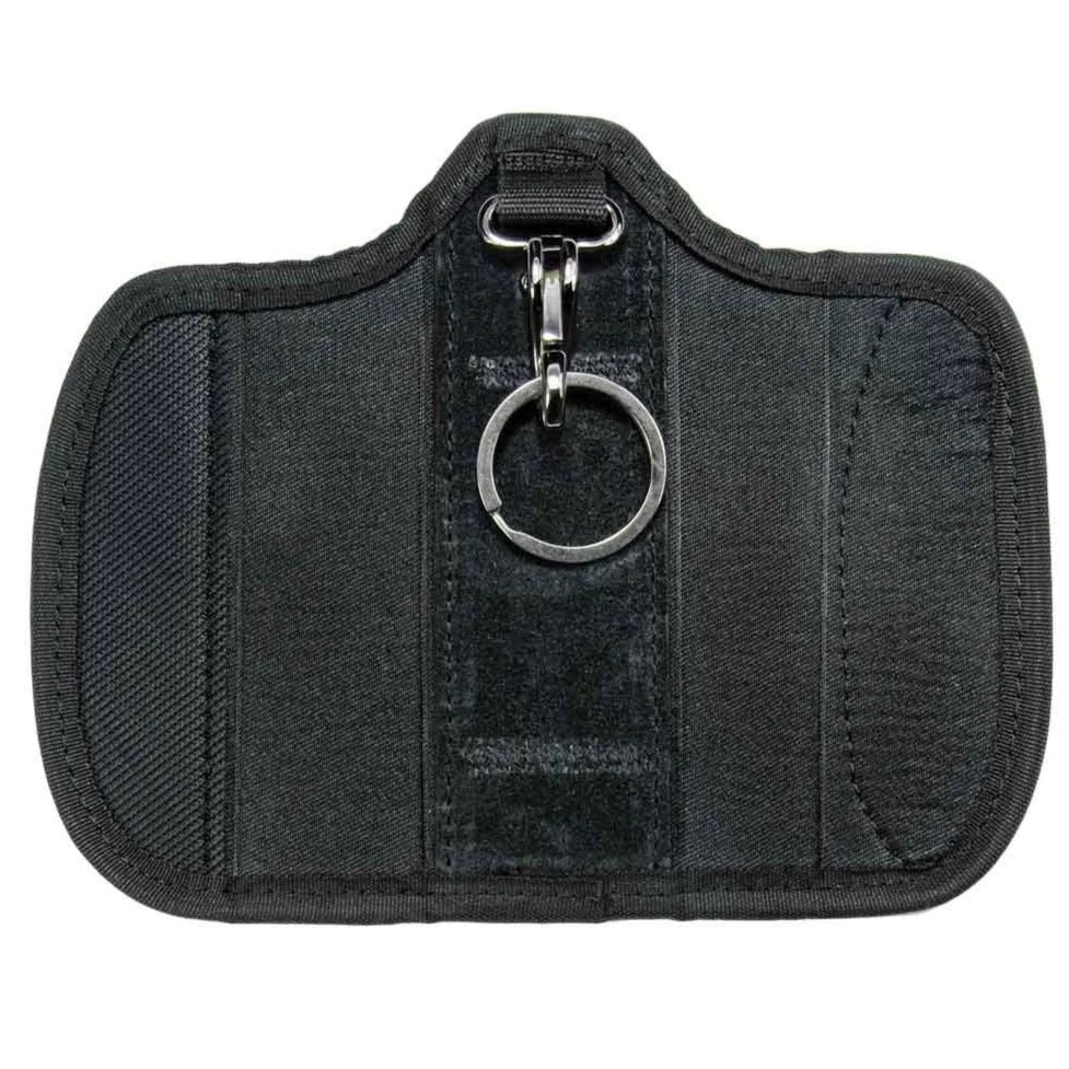 Ballistic Silent Key Holder with Clip is constructed with 1680 denier ballistic to provide lightweight comfort and durability. The metal clip allows one handed access to key ring. Wrap around design keeps keys firmly and quietly in place.