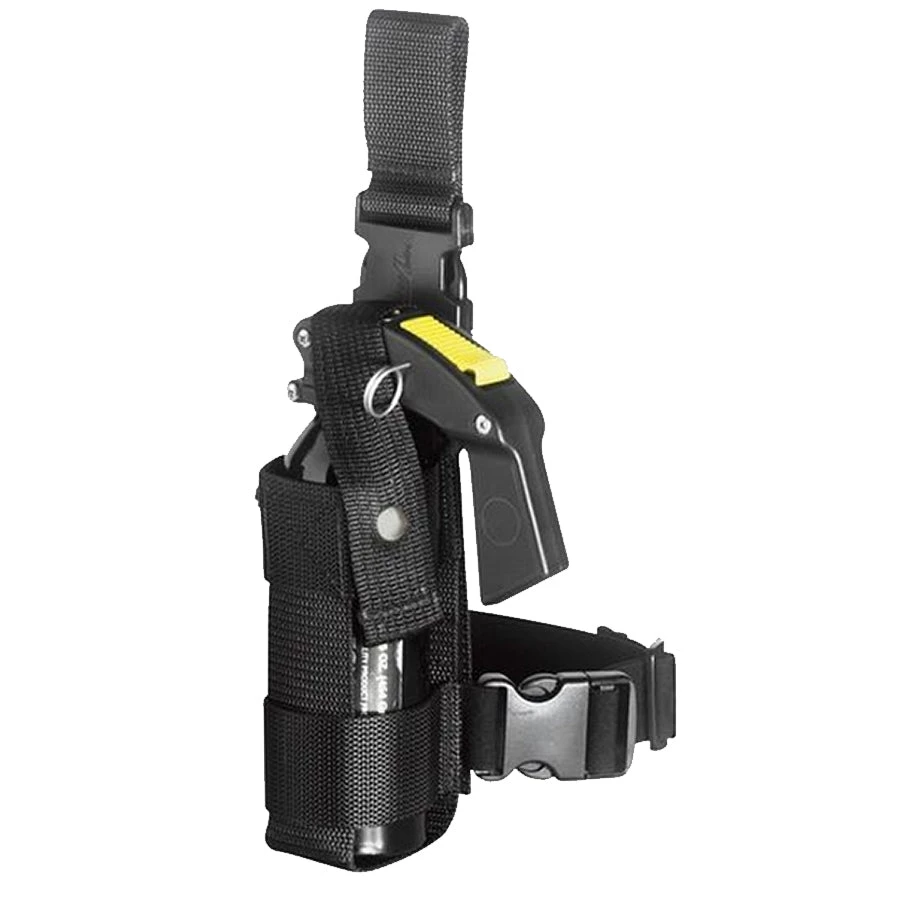 Ballistic OC Pepper Spray Holder is constructed with 900 denier ballistic web to provide lightweight comfort and durability. This model fits large MK9 canister used by law enforcement correctional professionals. Perfect crossroad of duty belt and drop leg holster, giving you fast access and secure equipment placement. Elastic band securely attaches canister to your leg and can be adjusted based on your tension preference. Easily clips and unclips for shift change and passing through metal detectors.