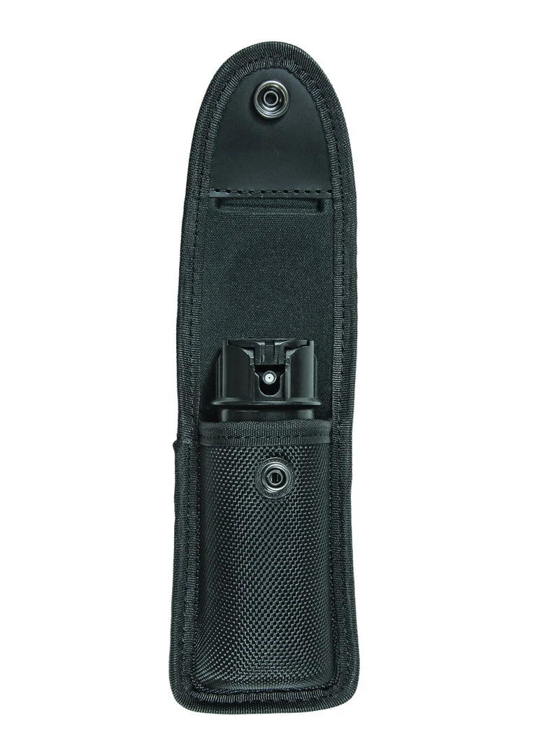 Ballistic OC Pepper Spray Holder is constructed with 1680 denier to provide lightweight comfort and durability. This model fits MK2, MK3 and MK6 canisters. Molded design for secure equipment placement and quick, easy in/out access. Hidden snap closure offers a professional look and reinforced USA DOT® snaps provide reliable, secure snap/re-snap functionality.