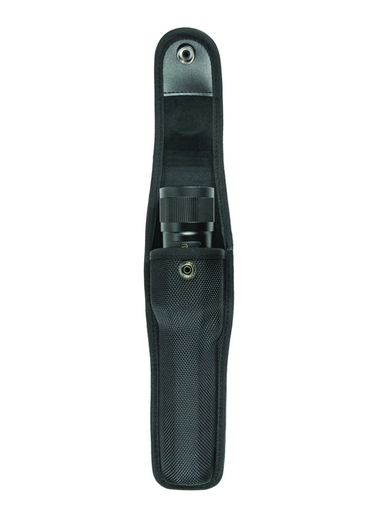 Ballistic Closed Flashlight Case is constructed with 1680 denier ballistic to provide lightweight comfort and durability. Molded design for secure equipment placement and quiet easy in/out access. Hidden snap design offers a professional look and reinforced USA DOT® snaps provide reliable snap/re-snap functionality.