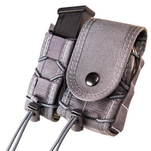 This combination of our Pistol TACO® and Handcuff TACO® – Covered will hold almost any combination of pistol magazines, small flashlights, multitools, handcuffs, field compasses or tins.