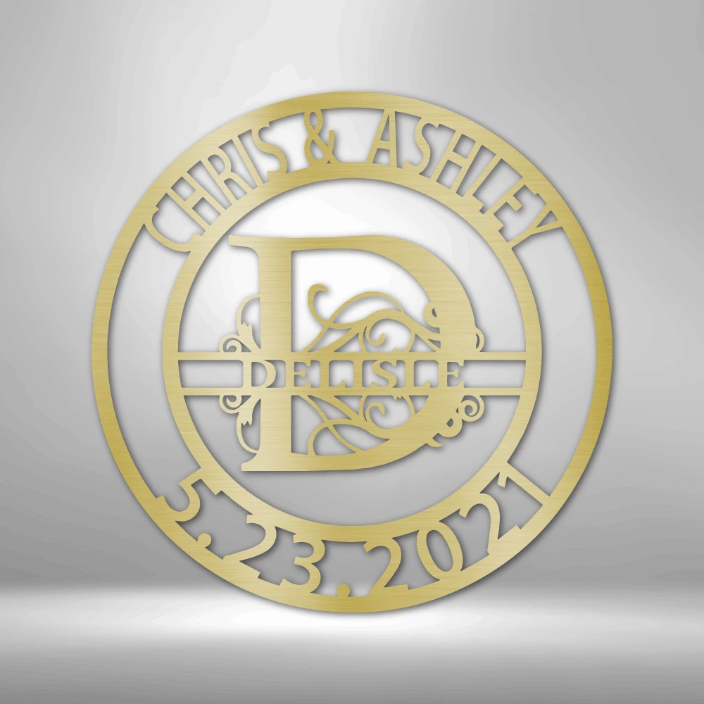 This sign has it all, really! The Elaborate Split Family Name Sign has 3 lines of personalized text and your initial in a fancy font the middle…what more could you ask for?