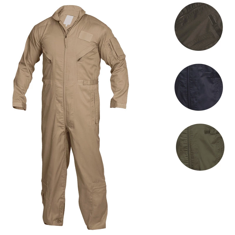 Coveralls for those who fly service aircraft, bust ghosts, perform ground maintenance, or for carrying out search and rescue missions. Sewn to military specification FNS/PD 96-17 (MIL-C-23141A). Whether on the ground or in the air, no work suit is more versatile.