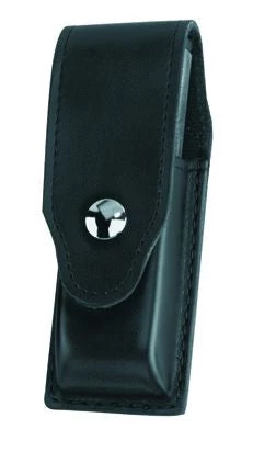 For vertical carry. Snap closure. Fits belts up to 2-1/4 in. Weatherproof polymer laminate is durable and scuff resistant.