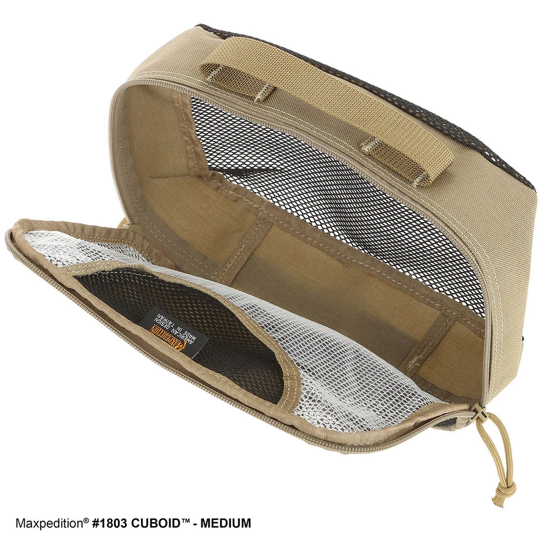 Cuboid organizers are soft containers excellent for travel and ideal for items that don’t wrinkle when folded or rolled. Their mesh areas allow viewing of contents.Â