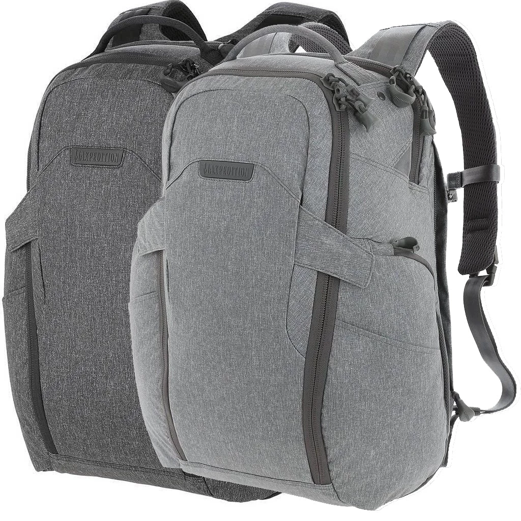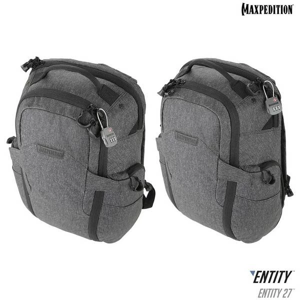 The Entity 27 is an ergonomic pack with padded shoulder straps and quick release buckles. There is a dedicated locking and padded compartment, which can hold a 15″ or 17: laptop. The main compartment is also lockable and has drawbridge straps for additional security. The front exterior has tuckable magnetic wings for quick temporary closing of the main compartment. The dual access rear CCW compartment is fully loop-lined, and a double-sided hook Security Lockout Strip is included. Dual side ports are perfect for headphones, charger cables, etc. A rear trolley handle pass-through allows for off body carrying while traveling.