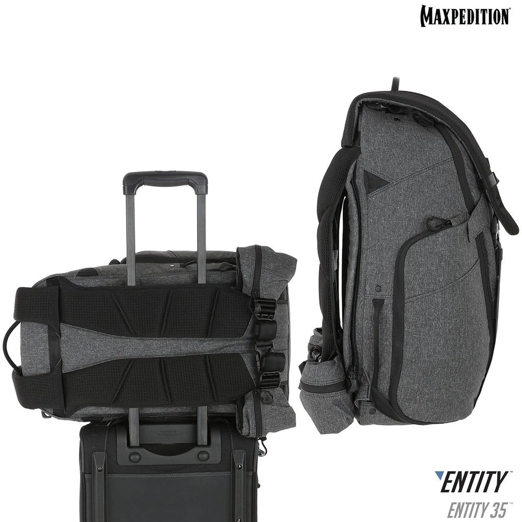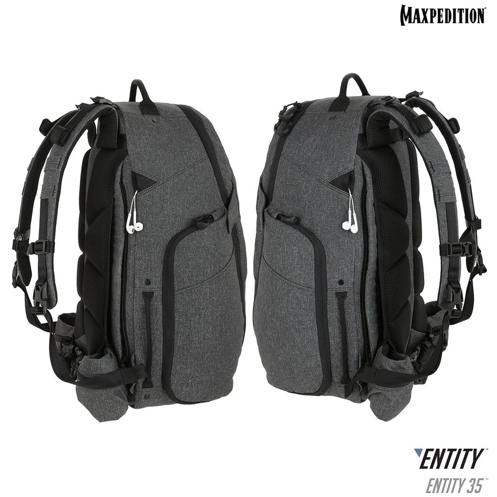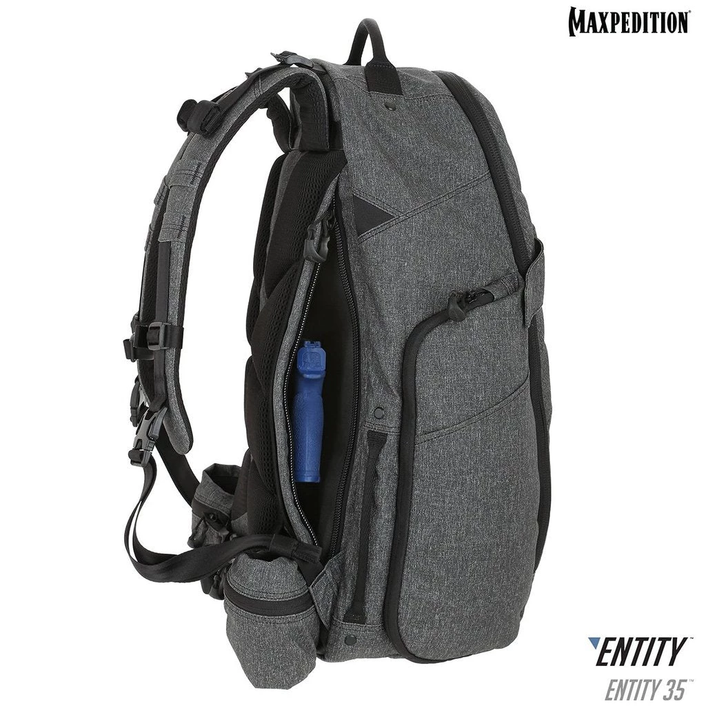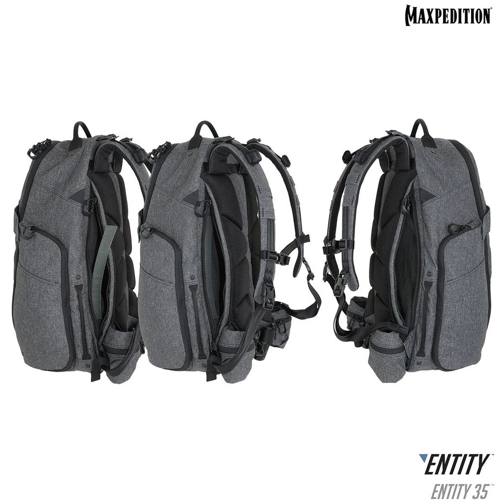 The Entity 35 is a 35L / 2136 cu. in. CCW-enabled backpack that has an internal frame & padded waist belt to provide additional back & lumbar support. Lifter straps give wearer the ability to fine tune shoulder strap ergonomics & fit.  Zippered pockets on the waist belt located within hands’ reach provide immediate access to personal effects. At the time of release in Spring 2019, it is the largest backpack in the Entity series, Maxpedition’s line of discreet concealed carry solutions for covert operators and prepared citizens who choose to be unnoticed.
