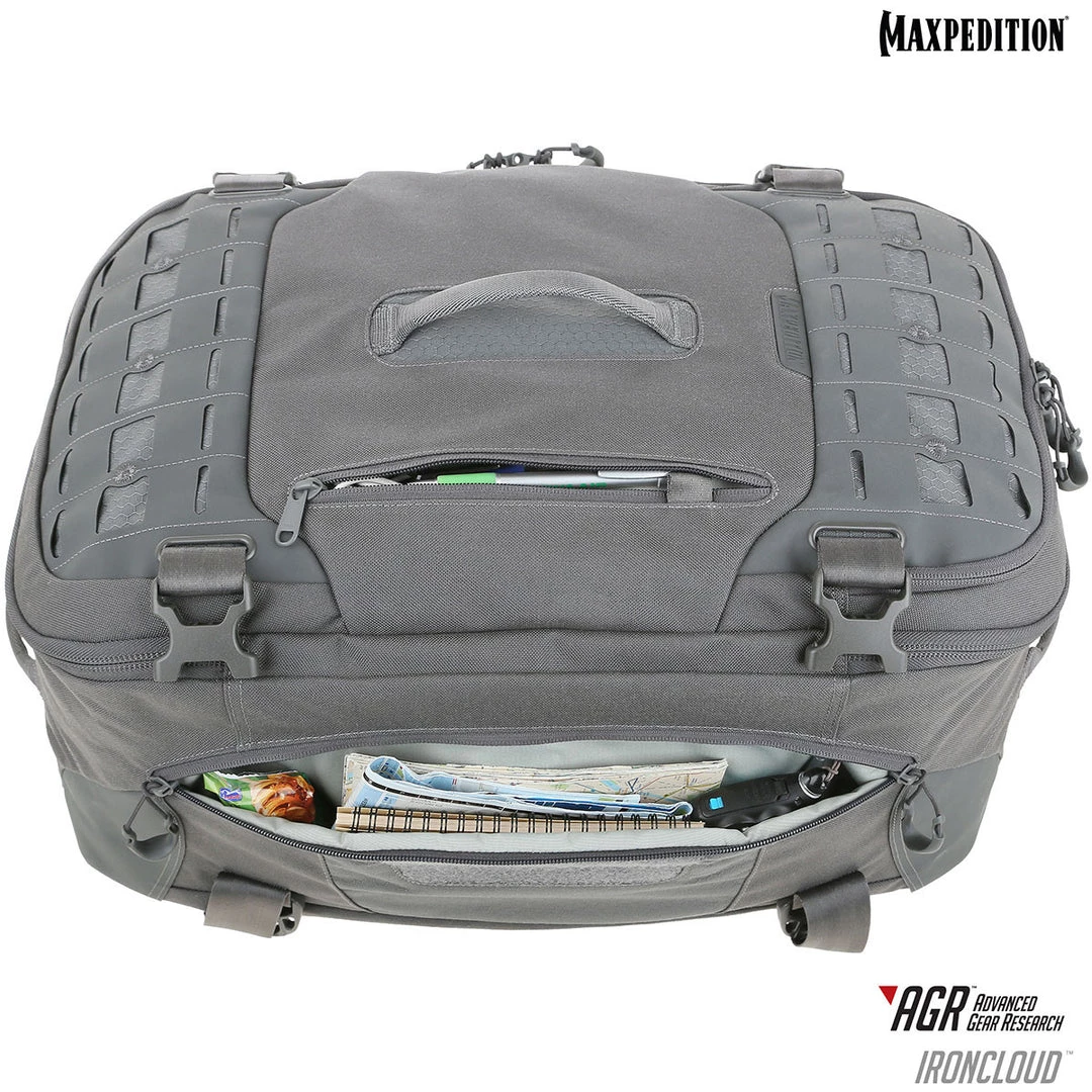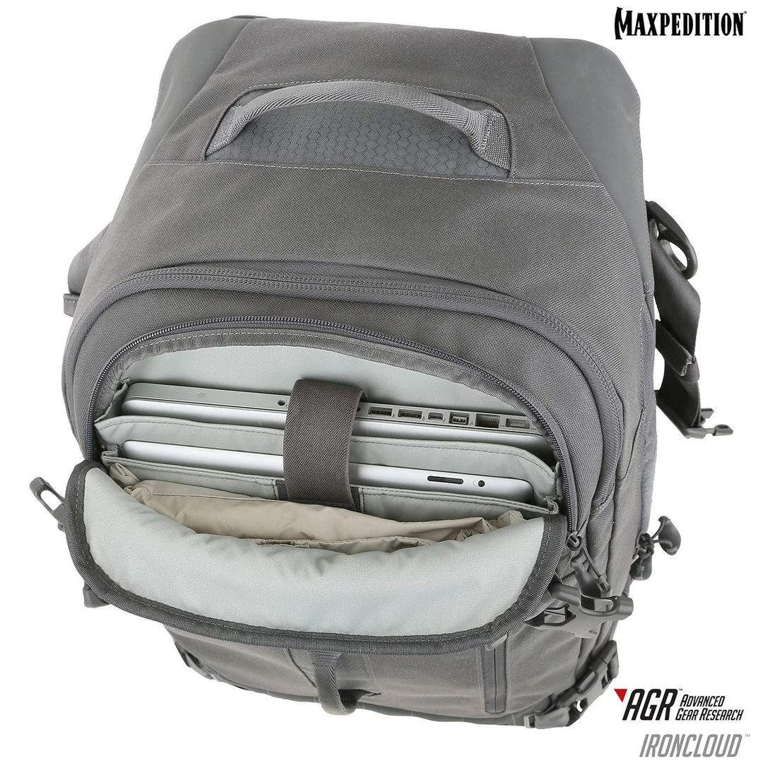The Ironcloud is a comfortable pack designed for travel and is carry-on friendly for most flights. It can be carried in three different orientations depending on the user’s preference: by the side handle, by the shoulder strap or by the backpack straps. The main compartment is lockable and has an internal compression bib inside for securing contents during travel. The Ironcloud has a padded compartment dedicated for a 15″ laptop or tablet on the exterior of the pack, making it easy for the user to access while on-the-go.