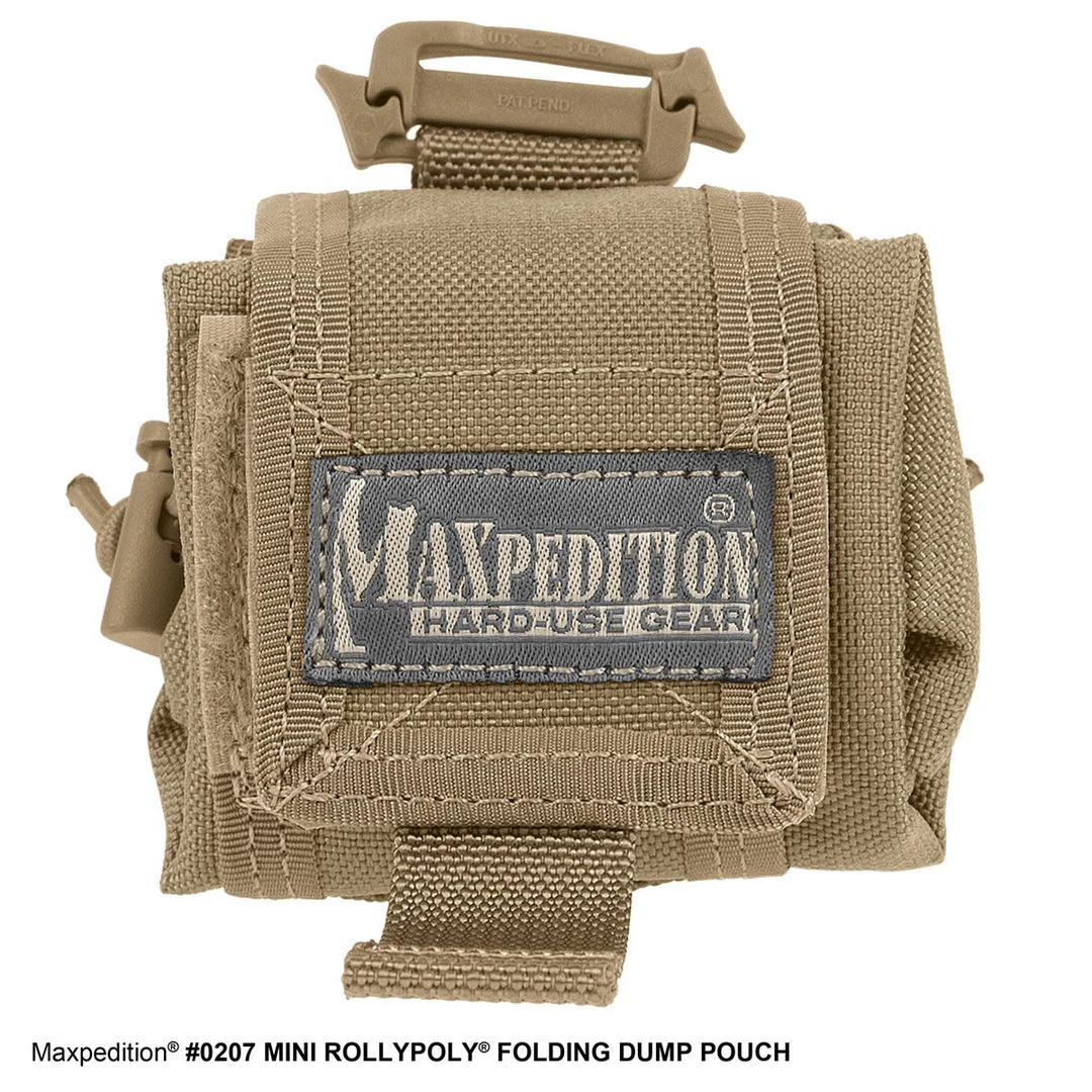 The Mini Rollypoly® is a folding dump pouch designed to hold a standard 32 oz. / 1L Nalgene or smaller water bottle. Bungee cord cinch and hook-and-loop flap lid secure top. Attach using one (1) 3″ TacTie® Attachment Straps (sold separately) or the belt loop.