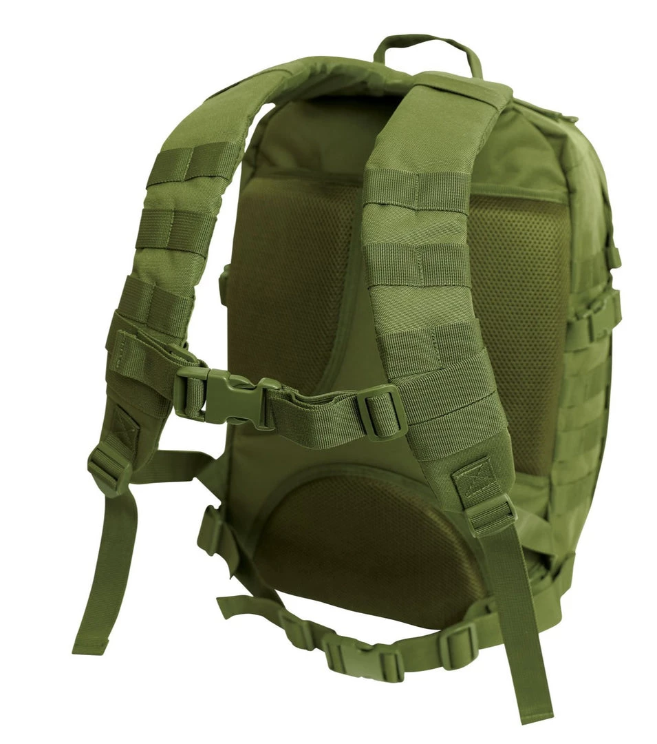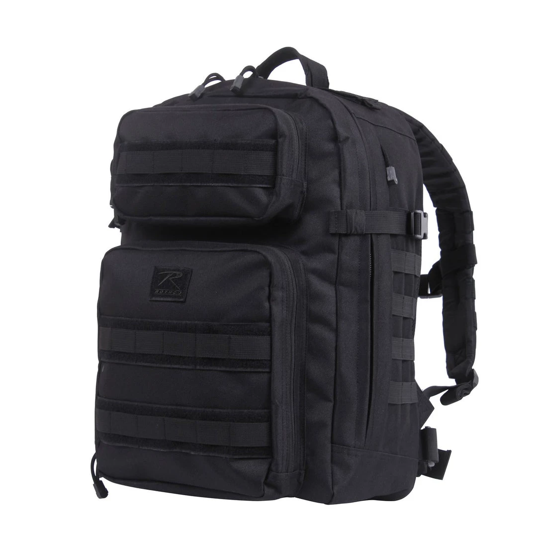 Rothco’s Fast Mover Tactical Backpack features an enhanced design to aid in comfort, durability, and all-day mobility. Made of a sturdy 600 denier polyester, the tactical pack measures 10″ x 12″ x 19″ and features multiple compartments ideal for securely storing gear. The large main compartment (6.5″ x 12″ x 19″) contains three mesh pockets with a zipper closure as well as one pocket with a drawstring closing. There are also two secondary compartments on the front of the pack. The top section (2″ x 9″ x 5″) contains 2 open-top pockets and 4 elastic loops for loose objects. While the lower section (2″ x 9″ x 10.75″) contains 4 open-top pockets, 1 zippered pocket, and 4 pen slots. Rothco’s Fast Mover Pack also features dual hidden side compartments that are ideal for storing compact gear such as a pocket knife, multi-tool, and important documents. The padded back and contoured yoke-style shoulder straps evenly distribute the weight of the pack. The fully adjustable and removable sternum and waist straps provided added stabilization and weight distribution pack for all-day comfort. In addition, the tactical pack features dual-sided cinch straps, top carry handle, and double zippers. Rothco’s Fast Mover Tactical Back is MOLLE compatible with MOLLE webbing on the side and front of the pack. The tactical bag is also hydration compatible with a bladder insert and dual pass-through ports for a hydration hose.