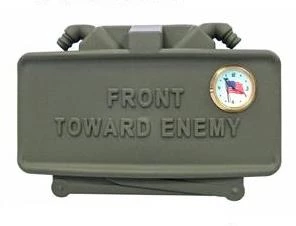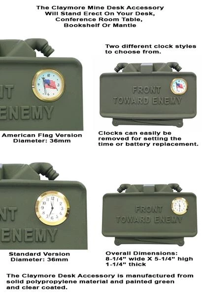 Our Claymore Mine Desk Accessory has been very popular with our customers. We thought we would add some value to it by adding a 36MM clock to the corner of the Claymore Desk Accessory.