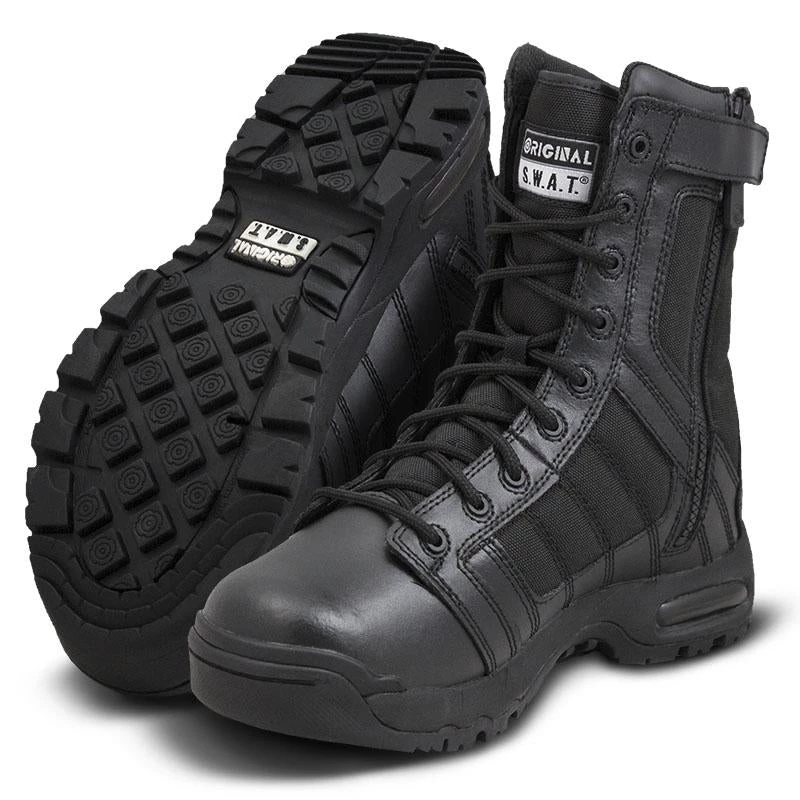 This boot uses “air” technology to increase the level of comfort and cushioning for long shifts on the hard surfaces of the urban battlefield. Equipped with only non-metallic components, the Metro Air 9″ Side-Zip is the ultimate airport-friendly law enforcement uniform boot.