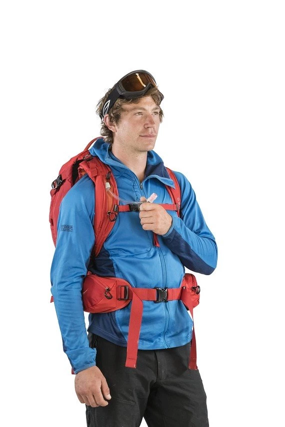 - Panel Load Access – Extra-large front panel j-zip access to avalanche safety pocket with shovel handle and probe sleeves