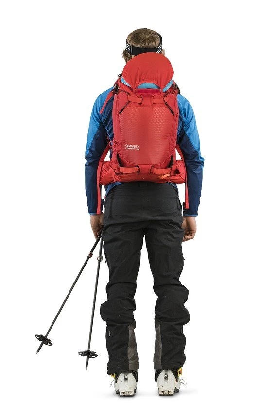 - Panel Load Access – Extra-large front panel j-zip access to avalanche safety pocket with shovel handle and probe sleeves