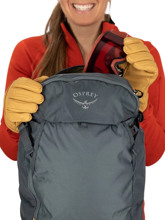 - Large front panel J-zip access to avalanche safety kit pocket with shovel handle and probe sleeve